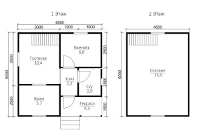 Продуманная планировка внутреннего пространства, просторность и естественная освещенность комнат, натуральное дерево – факторы эксплуатационной надежности и максимального комфорта. Общая площадь дома составляет 58 кв.м., а размер – 6х6 м..