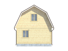 Проект полутораэтажного дома из бруса с маленькой террасой – оптимальный вариант для загородного проживания. Сдержанные архитектурные элементы и четкие контурные линии в проекте 18 расширяют функциональность дома и придают постройке респектабельный вид.