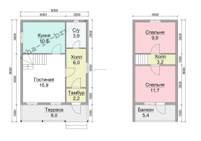 Продуманная планировка внутреннего пространства, просторность и естественная освещенность комнат, натуральное дерево – факторы эксплуатационной надежности и максимального комфорта. Общая площадь дома составляет 63.1 кв.м., а размер – 6х9 м..