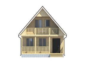 Проект полутораэтажного дома из бруса с балконом и маленькой террасой – оптимальный вариант для загородного проживания. Сдержанные архитектурные элементы и четкие контурные линии в проекте 118 расширяют функциональность дома и придают постройке респектабельный вид.