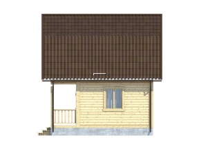 Просторная гостиная и уютная кухня имеют конструктивную планировку и открыты для естественного освещения благодаря двойным зимним окнам. Отличительной особенностью проекта является балконом и маленькой террасой. Дом надежно укрыт от непогоды двускатной, покрытой ондулином заранее выбранной расцветки.