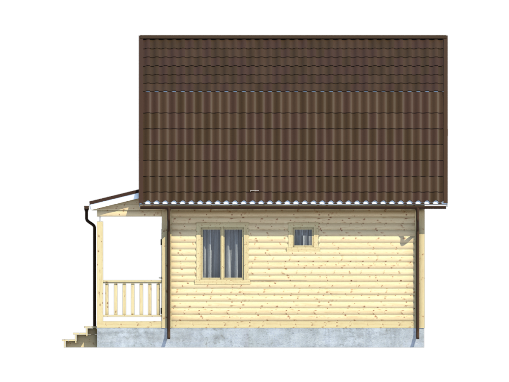 Просторная гостиная и уютная кухня имеют конструктивную планировку и открыты для естественного освещения благодаря двойным зимним окнам. Отличительной особенностью проекта является маленькой террасой. Дом надежно укрыт от непогоды двускатной, покрытой ондулином заранее выбранной расцветки.